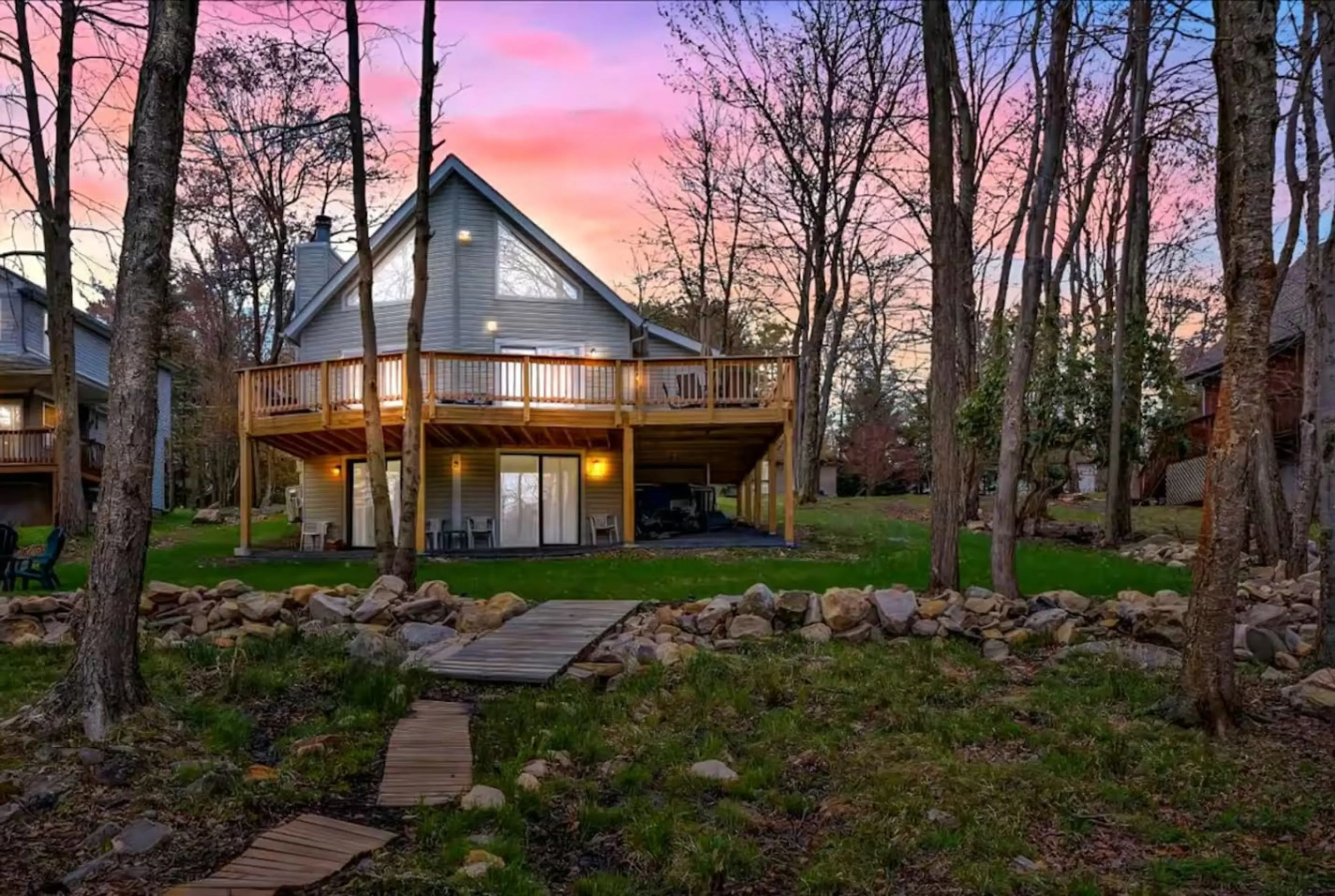 This charming home nestled in the heart of the picturesque Poconos is just steps away from Lake Carobeth. With a large deck, a game room, a fire pit, and seasonal access to a pool, it’s the perfect place for the whole family. Enjoy a peaceful place surrounded by natural beauty and easy access to maj...